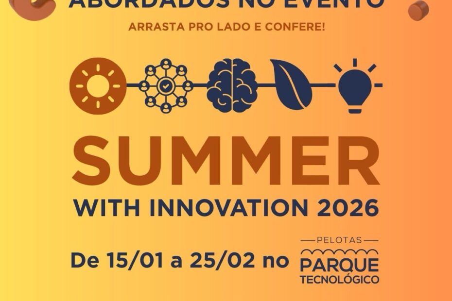 [INSCRIÇÕES ABERTAS] DESCRIÇÃO: Summer With Innovation 2026 Inspiração e Inovação para Novos Começos O verão mais inovador do ano continua! Promovido pelo Pelotas Parque Tecnológico,… Ler mais »[INSCRIÇÕES ABERTA] Summer With Innovation 2026
